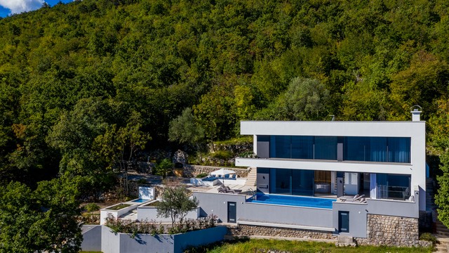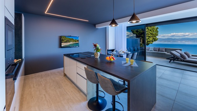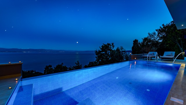 This stunning newly built villa features a heated infinity pool with breathtaking views of the Gulf of Kvarner, a private garden, and a terrace equipped for alfresco dining. Inside, enjoy a modern kitchen, a cozy living area with a 70-inch HDTV, and two elegantly appointed bedrooms with en-suite bathrooms. Indulge in amenities including a hot tub, sauna, and high-speed WiFi. Perfectly situated for tranquility and relaxation, close to the sea and beach!