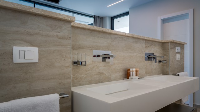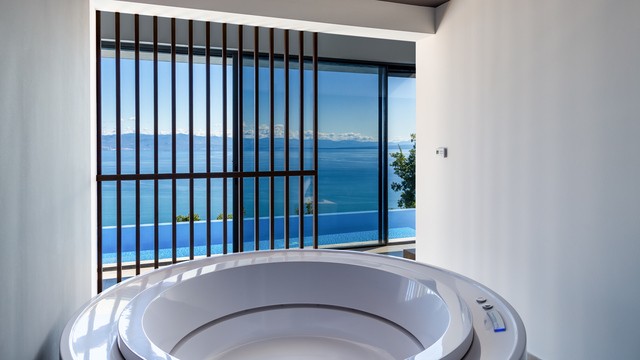 This luxurious villa offers two spacious bedrooms, each with its own ensuite bathroom, providing ample space and comfort for a group of friends or small family. The ample living area features direct access to a private infinity-style pool overlooking the stunning sea views, creating a tranquil and picturesque setting for your getaway. In addition to the lavish bedrooms and pool area, this villa includes a wellness room with a rejuvenating sauna and hot tub, and a fully equipped kitchen for preparing gourmet meals. Step outside to the outdoor spaces where you’ll find a BBQ for outdoor dining and a manicured garden to enjoy the Mediterranean sunshine. Whether you’re soaking in the pool, indulging in the sauna, or admiring the panoramic sea views from the bedrooms, the Two Bedroom Sky Pool Villa in Medveja offers a luxurious and unforgettable escape on the Croatian coast.